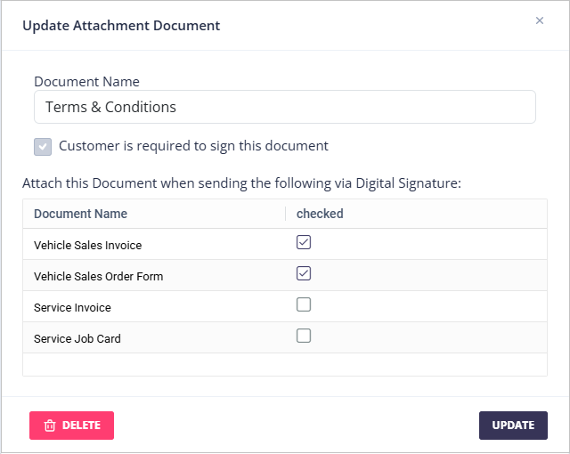 Digital Signatures can be sent for Vehicle Sales Order Forms and Vehicle Sales Invoices.