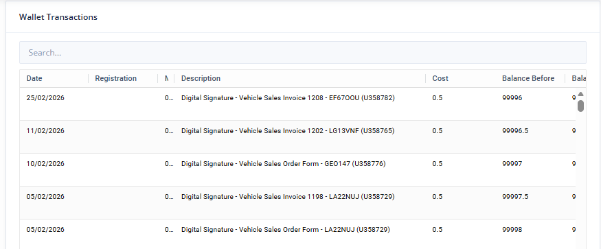 A log of all Digitally Signed documents will be listed in your Wallet Transactions. You can view these by going to Settings > Accounts Settings > Wallet Transactions.