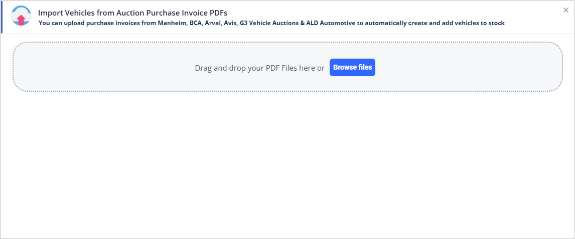 You can upload multiple documents in one go, or if you have 1 invoice with multiple vehicle purchases on it, that can also be uploaded.